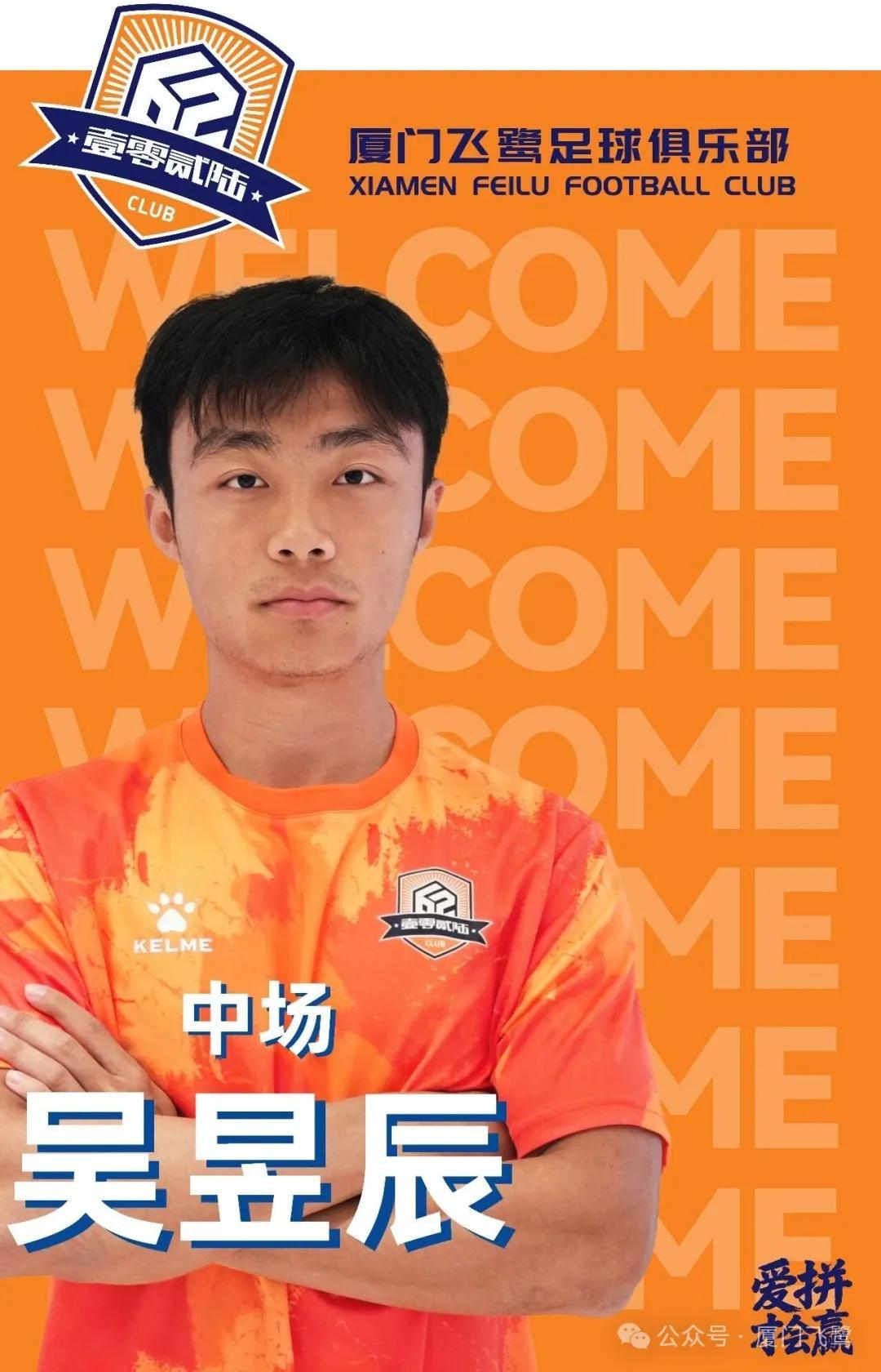 欢迎吴昱辰加盟厦门飞鹭足球俱乐部,期待他在新赛季展现出色表现,为球队贡献力量。