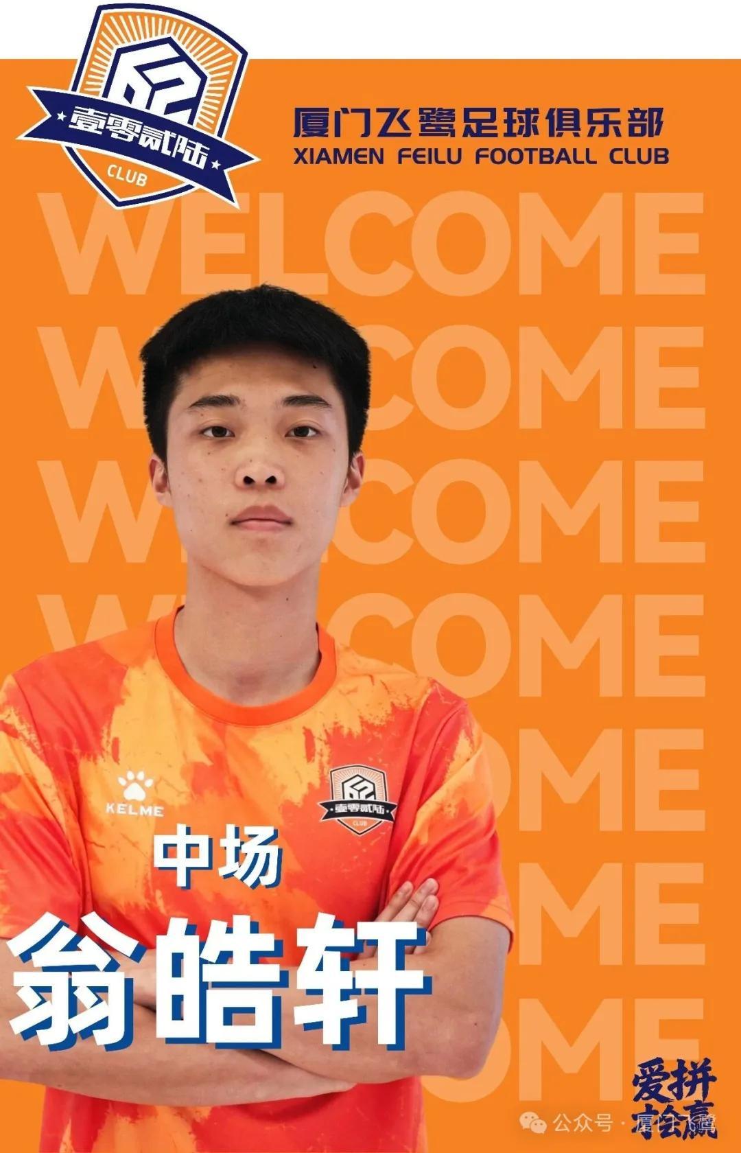 欢迎翁皓轩加盟厦门飞鹭足球俱乐部,期待他在新赛季展现出色表现,为球队贡献力量。